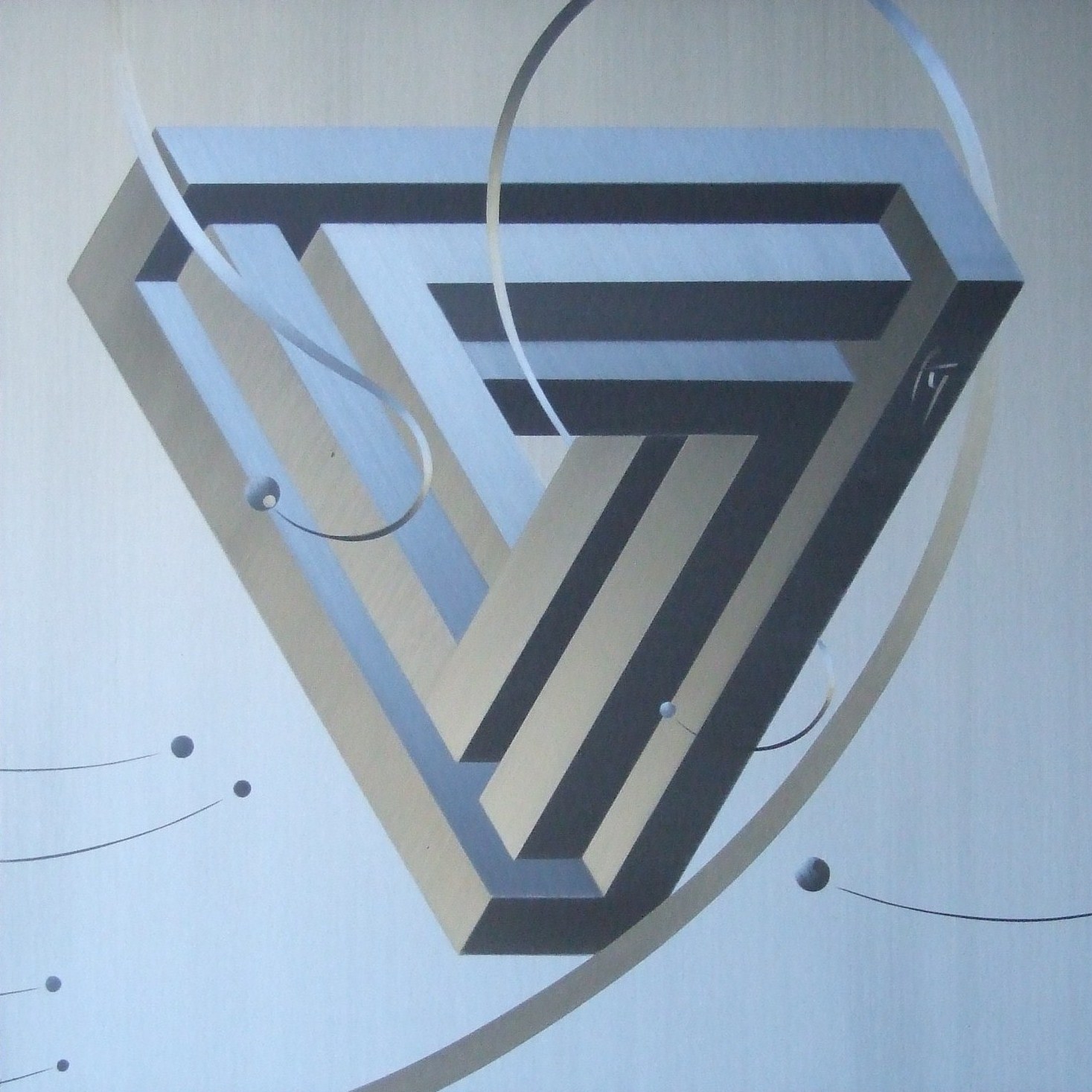 La création énigmatique ci-dessus, semble définir les limites de la réalité et de l’illusion. À première vue, vous pourriez discerner un triangle en volume, mais en réalité, c’est bien plus que cela.