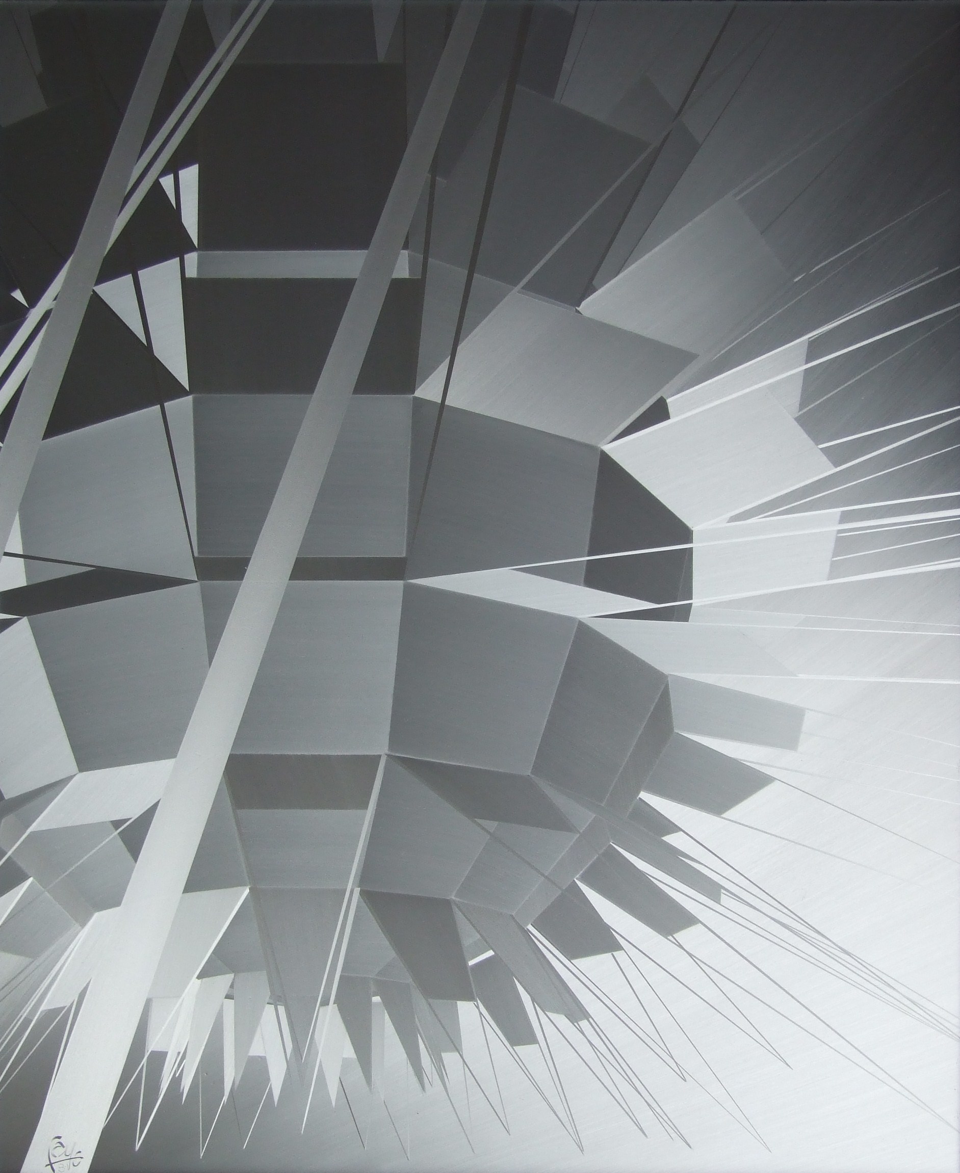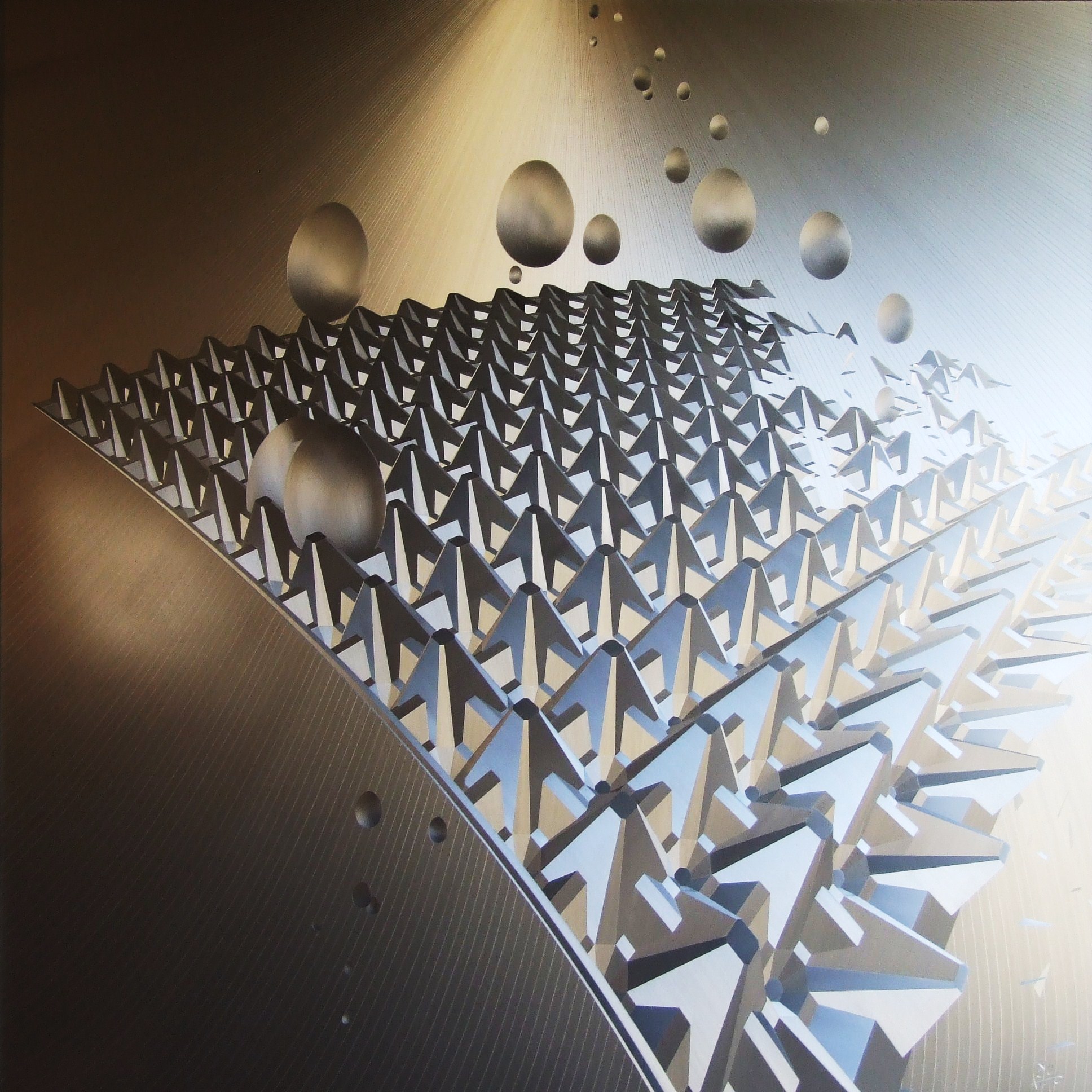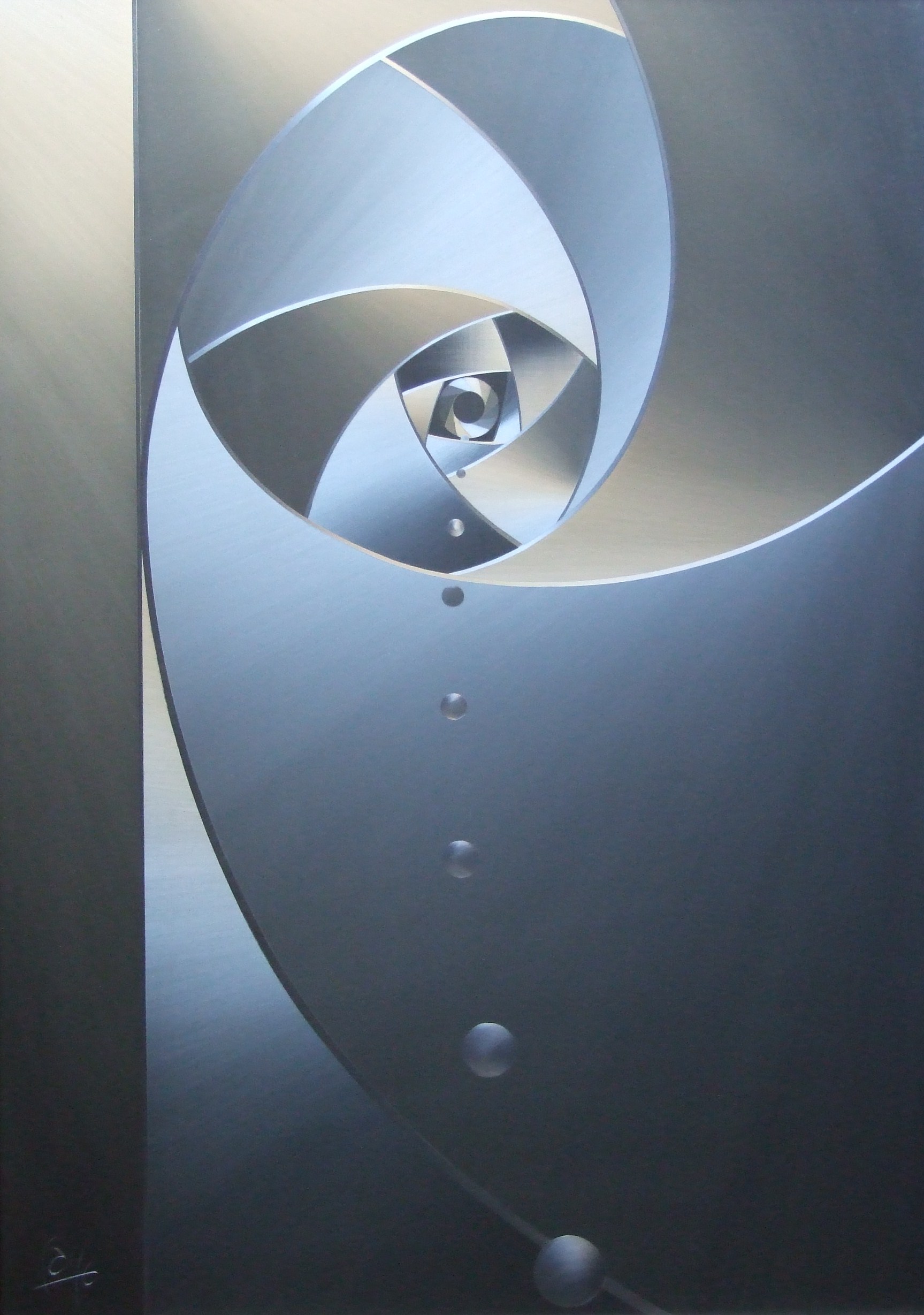 Grâce à la magie de l’alu brossé, la figure évolue sous vos yeux à chaque changement de lumière. Les lignes métalliques semblent danser, se tordre, et se réinventer, vous laissant vous interroger sur la nature même de la perspective.