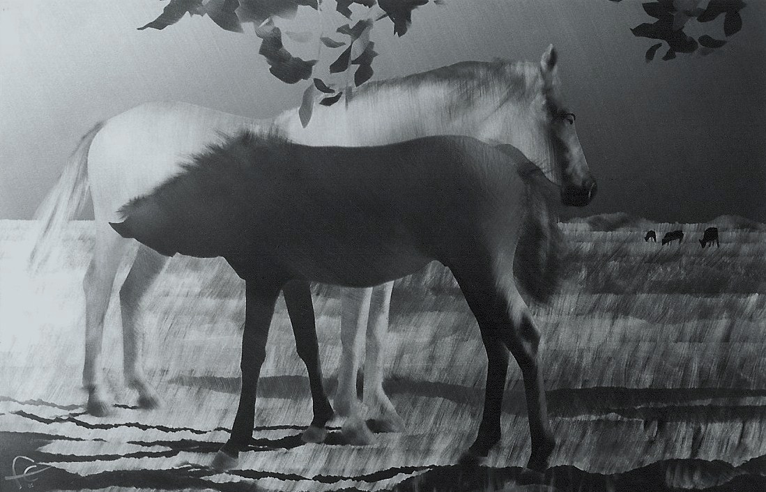 Regardez ci-dessous Pinède et Sener, deux chevaux camarguais :